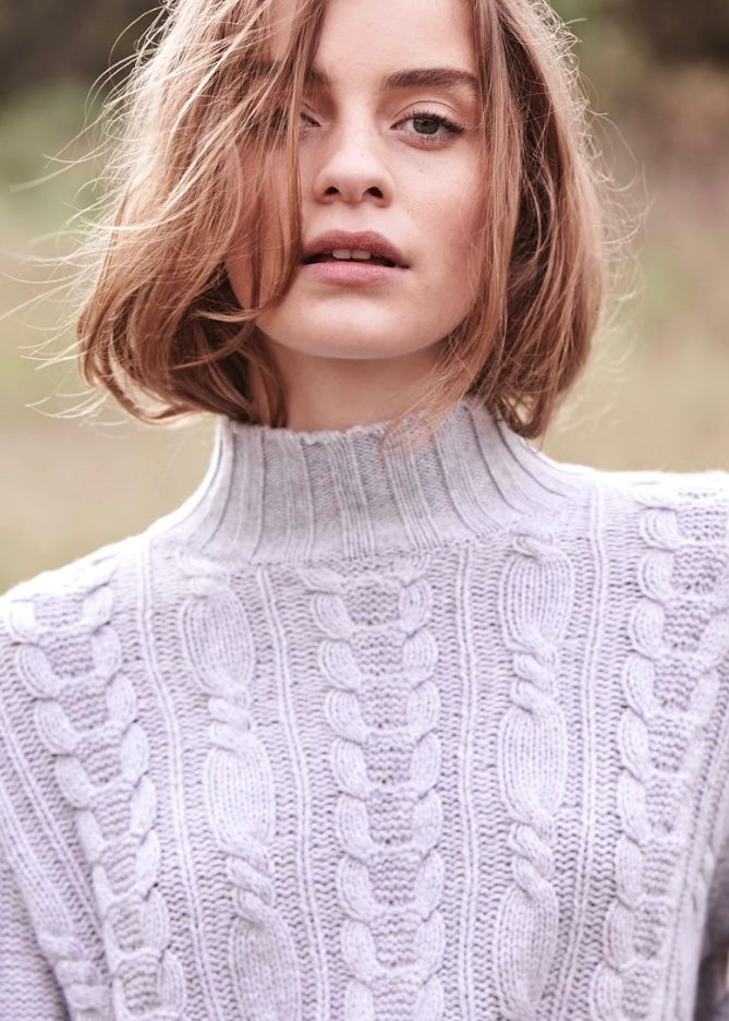 Cashmere Lauren Cable knit in Pale Marle Grey