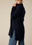 100% cashmere long line cardigan in ink. This fine long cardigan is soft and light with a gentle shawl collar at the neck. It's fitted though the body and has side slits with a dip at the back hem to give it shape. This slim line cardigan is a classic that suits everybody.