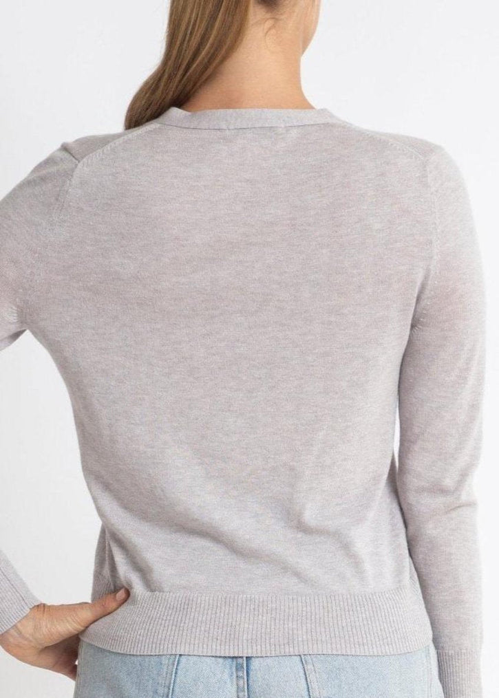 Cotton + Cashmere Superfine V Cardigan in Silver Marle